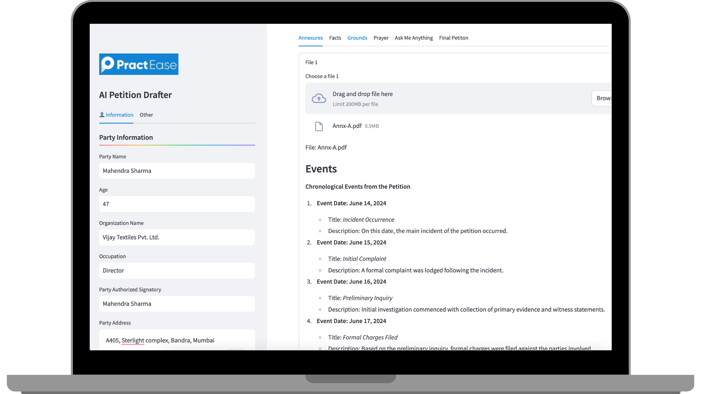 Built by lawyers & techonologist - as a lawyer, you're constantly battling against time. Hours spent drafting contracts, researching case law, and preparing petitions eat into your productivity and limit your client base. What if you could reclaim those lost hours and transform your practice?